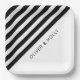 Assiettes En Carton Mariage Carré simple à rayures noir et blanc