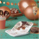 Voici des assiettes en papier pour une fête prénuptiale sur le thème de l'amour automnal avec des fleurs bourguignonnes !