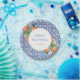 Oranges peintes à la main sur un motif de fond basé sur un carreau vintage bleu et blanc. Si vous préférez le cercle central avec un bord simple (plutôt que festonné), cette option est disponible. Sous les boîtes de personnalisation du texte, "cliquez pour personnaliser davantage", puis accédez à la zone "calques" et affichez "ovale" et masquez le calque de cercle festonné.