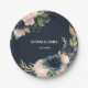 Ces exquises assiettes en papier mariages à fleurs d'automne sont parfaites pour un mariage tropical. Le design dépeint des fleurs fantaisistes de couleur rose dessinée à la main, bleu foncé et bleu marine, inspirant élégance, classe et beauté naturelle. Ces assiettes en papier jetables sont parfaites pour le gâteau ou la table de desserts. Faites-les vous-mêmes en incluant les noms de la mariée et du marié et la date du mariage.