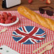 Ajoutez les noms d'une phrase spéciale à cette conception de drapeau Union Jack classique. Egalement disponible dans les invitations.