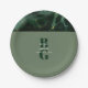 Assiettes En Carton Mariage Monogramme Moderne en Marbre Vert