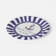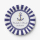 Personnalisez ce design élégant de plaque en papier rayée marine pour mariage nautique. Motif rayé bleu marine et blanc avec une ancre de navire marine en haut et une bordure de corde bleue et blanche. Un modèle pour une personnalisation facile de vos détails de mariage tels que les noms de la mariée et du marié ainsi que la date du mariage. Le même design est disponible dans d'autres fournitures de papeterie de mariage assorties pour porter le thème du mariage nautique avec style.