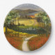 Une assiette romantique en papier peint d'un beau tableau d'art d'une scène de paysage d'inspiration italienne. Beau pour un mariage d'été ou un couple qui aime l'Italie.