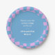 Assiettes en papier personnalisées pour mariage de couples rétro bleu-violet damier mignon