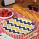 Plaques de fête en papier sur mesure avec un motif chic en chevron de zigzag. Cliquez sur Customiser pour personnaliser le design avec vos propres textes et images pour créer un design unique et unique pour correspondre à n'importe quel décor de fête!