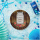 Conception d'une douche nuptiale avec pot Mason et tableau en forme de couronne de roses et de fleurs colorés, sur une image d'arrière - plan de planche en bois vintage brun foncé. Un thème d'été rustique extérieur pour une douche à thème champêtre ou cabine nuptiale. De riches panneaux de bois brun foncé provenant d'une clôture ou d'un plancher antique contrastent avec de jolis graphiques floraux. © CustomInvitesOnline.com