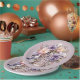 Vous serez émerveillés par les belles couleurs audacieuses de vos assiettes et serviettes de table. Couleurs en gras avec centres floraux coordonnés, texte et date de douche