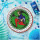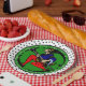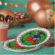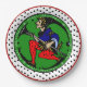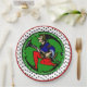 Ces plaques en papier présentent la variante originale de HoMeArt d'un elfe Maxfield Parrish d'avant la Première Guerre mondiale avec collants à pois blanc et noir contre médaillon rond vert kelly flottant au-dessus d'un arrière - plan à pois blanc noir. Le salut "Joyeux Noël" est répété encerclant le médaillon.