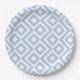Cette élégante motif géométrique bleu clair et blanc est une décoration originale. Des méandres blancs inclinent autour de diamants bleu pâle contenant des diamants blancs. Les zigzags bleus de bébé assurent une séparation subtile entre les chemins sinueux.