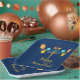 Hanukkah party plates with a menorah and sufganiyots. The words can be changed to suit your own details or requirements