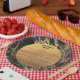 Ce menu de mariage à assiette en papier présente un thème élégant et rustique qui convient à tous les lieux extérieurs ou intérieurs. Les éléments du menu sont imprimés dans une police claire et classe, avec une bordure sombre et complexe qui ajoute une touche de sophistication et de contraste. L'assiette est accompagnée d'une serviette pliée et d'une fourchette dorée, créant un cadre formel pour dîner. L'assiette est également recouverte de deux feuilles verts, apportant une touche de beauté naturelle et de couleur à l'ensemble. Ce menu mariage de plaque de papier est un moyen créatif et économique d'impressionner vos invités et de rendre votre journée spéciale mémorable.