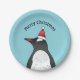 Assiettes En Carton Mignonette Gentoo Portant Le Chapeau Du Père Noël