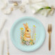Assiettes En Carton Mignons lapin de Pâques & Fleurs sur bleu clair