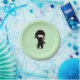 Joyeux dessin humoristique ninja habillé en noir avec le bras relevé en agitant. On peut voir le katana d'épée japonais traditionnel attaché par-dessus son épaule.