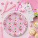 Flamands roses de Noël aux lampes à cordes et chapeau de Père Noël sur un arrière - plan rose aux flocons de neige et aux palmiers à la décoration festive. C'est un mignon motif pour fêter Noël à l'ambiance tropicale ! Montré ici sur des assiettes personnalisables de fête en papier. Vous pouvez facilement redimensionner le motif à votre préférence, sélectionner votre couleur arrière - plan préférée, ajouter n'importe quel texte. Amusez-vous pour des fêtes de vacances à la maison, à l'école ou au bureau !