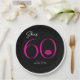 Moderne et chic, ce design de plaque de papier d'anniversaire déclare, "elle a 60" et combine le noir et blanc classique avec des accents de rose chaud brillant, avec une paire de lèvres ludique. Le design minimal est un design simple et amusant pour célébrer l'anniversaire de l'événement. Créé par Simply Farmhouse Press.