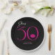 Moderne et chic, ce design de plaque de papier d'anniversaire déclare, "elle a 40" et combine le noir et blanc classique avec des accents de rose chaud brillant, avec une paire de lèvres ludique. Le design minimal est un design simple et amusant pour célébrer l'anniversaire de l'événement. Créé par Simply Farmhouse Press.