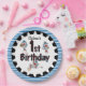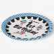Sock Monkey Baseball 1er Anniversaire assiettes en papier, un design mignon qui convient aux enfants qui aiment le sport, surtout le baseball, et les singes mignons! Dispose de trois joueurs de baseball de singe chaussette en casquettes de baseball, un glissant dans la plaque d'immatriculation, un à la batte, un se préparant à lancer la balle! Le texte en pointillé de pka noir indique 1er anniversaire et il y a une bordure de rayures bleues et blanches et une bague décorative noire. Vous pouvez facilement customiser ces sock singe baseball 1er anniversaire plaques de papier avec un nom!