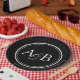 Serve guests with personalized wedding plates by adding initials inside the double borders. An ampersand sits between the initials on a black background.