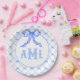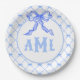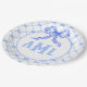 Ce motif topiaire est composé d'un arrière - plan à motif en treillis bleu et blanc très chic avec des arcs bleus coordonnés. Vous pouvez personnaliser avec vos initiales monographiques.