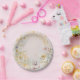 Assiettes En Carton monogramme de baby shower rose blanc