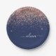 Assiettes En Carton Monogramme de Parties scintillant bleu marine rose