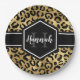 Assiettes En Carton Monogramme de points de léopard noir or