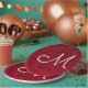 Décor de réception de mariage d'hiver de Noël rouge. Plaques de papier motif à monogramme floral. Classy, chic, élégant, moderne, tendance, élégant, beau métal succulent. Pour modifier la typographie, cliquez sur modifier la conception. Copyright de l'image Marg Seregelyi Photography.