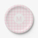 Assiettes En Carton Monogramme En vichy rose pâle simple