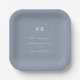 Assiettes En Carton Monogramme Mariage bleu foncé couleur simple