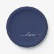 Assiettes En Carton Monogramme moderne bleu marine et blanc