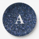 Assiettes En Carton Monogramme Parties scintillant bleue initiale Blan