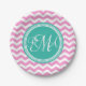 Assiettes En Carton Monogramme Pink et Turquoise Chevron Custom
