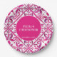 Hot Pink magenta Espagnol Mexicain Talavera carreaux élégant mariage monogramme papier imprimé plaques modèle, couleurs vives audacieuses moderne mexicain espagnol Hacienda style mariage couleur vive personnalisable vaisselle imprimée assiettes personnalisables