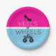Célébrez votre sexe révélée avec nos plaques de papier monstre "talons ou roues" uniques. Ce design de haute qualité présente un contraste saisissant entre un talon noir élégant et un gros camion Monster audacieux, dans un décor de couleurs noir, rose et bleu captivant. Customisez votre message en bas pour le rendre vraiment spécial. De plus, choisissez parmi une gamme de couleurs personnalisées pour convenir à votre style. Ces assiettes correspondent parfaitement à votre genre extraordinaire révéler la célébration ©2022 Miss Sassy Party Designs
