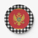 Plaques de papier : Plaques de fête du Monténégro rustique avec drapeau du Monténégro entouré de motif de buffle noir et blanc - amour mon pays, décor festif, patriotes nationaux / fans de sport
