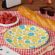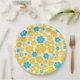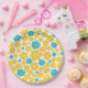 Assiettes En Carton Motif aux fleurs - Turquoise et Jaune