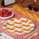 La tarte citrouille est ma tarte préférée pour les vacances et les chutes, alors j'ai fait un motif mignon avec eux! Chaque tarte est recouverte de beaucoup de crème fouettée sucrée, comme je l'aime ! On le voit ici sur des plaques rondes, en papier. Ajoutez votre arrière - plan de couleur préféré au lieu du blanc si vous préférez. Réglez facilement la taille du motif aussi. Parfait pour une rencontre de Thanksgiving !