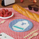 Assiettes En Carton Motif clé grecque et mariage colonne bleu aqua