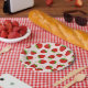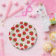 Plaques de papier dans un motif éparpillé de fraises rouges mûres sur un arrière - plan de point rouge et blanc épingle