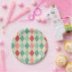 Profitez d'un look rétro amusant qui rappelle le cirque avec des assiettes de fête dans un design arlequin vintage aux tons turquoises, menthe, rouge, rose et beige. Montré ici avec seulement le motif arlequin, une version de fête d'anniversaire personnalisée de cette conception est également disponible. Des serviettes correspondantes sont disponibles dans ce design.