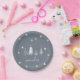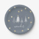 Christmas Party Gold Stars pour votre repas de la saison des Fêtes. Ces Plaques de Papier de Style Élégant sont conçues dans un bleu doux avec des arbres de Noël blancs et des étoiles de couleur or. Le texte comprend : émerveillement. N'oubliez pas de chercher les accessoires en bleu de Noël Gold Stars Party correspondants.