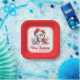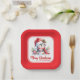 Ces assiettes de Noël rouges et blanches festives avec un mignon manchot, un minuscule bonhomme de neige, et une verdure festive, comportent un joyeux dicton de Noël et un modèle pour votre nom de famille pour les personnaliser pour la fête de Noël. La conception est optimisée pour les Plaques papier Carrés de 7 pouces, donc pour d'autres formes et tailles, vous devrez peut-être ajuster la disposition.