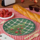 Plaques de papier plaqué de Noël en vert, blanc avec rouge et or.