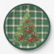 Assiettes En Carton Noël Plaid Vert, Blanc, avec Rouge, Or