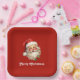 Plaques en papier avec une joyeuse illustration d'un Père Noël de style vintage aux joues rouges roses. portant son chapeau de Père Noël rouge classique et son grand ours blanc. Un spring de saint ajoute à l'esprit festif de fête de ce design.
