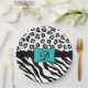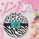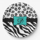 Profitez d'un divertissement avec ces assiettes en papier élégantes et sophistiquées. Les rayures colorées de zèbre et les peaux de léopard ou de guépard pour le design graphique sont l'une des tendances artistiques et design les plus chaudes, et est extrêmement populaire de la mode à la décoration maison. Ce noir et blanc sophistiqué avec zèbre gris ou gris et motif empreinte de léopard est disponible en plusieurs combinaisons de couleurs. Un emblème bleu turquoise turquoise crée une zone de personnalisation avec votre monogramme. Ceci est entièrement personnalisable. Allez-y avec ces modèles de peaux sauvages !