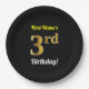 Assiettes En Carton Noir, Faux Or 3ème anniversaire + Nom personnalisé
