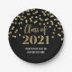 Classe de graduation personnalisable de 2021 assiettes en noir glamour confetti d'or motif et élégant texte de style lettré à la main.